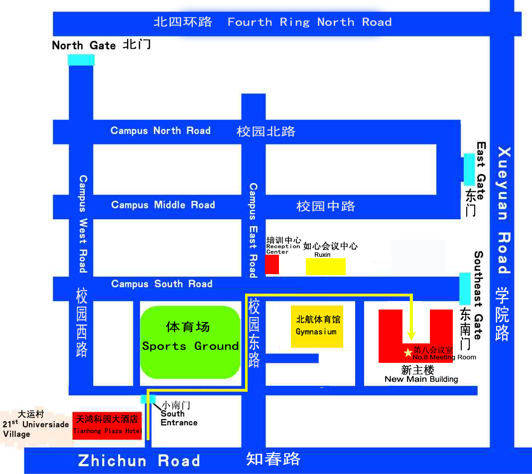 AISC 2006 will take place at the Conference Center in the New Main Building (instead of Ruxin Conference Center announced early), Beihang University. We have reserved rooms at Tianhong Plaza Hotel and Beihang Reception Center for AISC 2006 participants. It takes about 15 minutes to walk from Tianhong Plaza Hotel to the conference site.